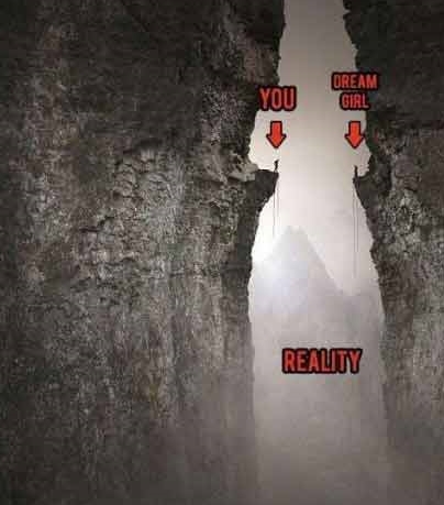 절벽 맞은 편에 서 있는 결코 다가설 수 없는 장면이 마치 솔로 남성들이 처한 현실과 비슷하다.