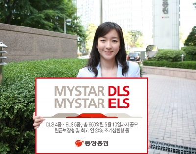 동양증권은 오는 10일까지 나흘간 원금비보장형 DLS 4종 및 원금보장형 ELS 2종, 조기 상환이 가능한 원금비보장형 ELS 3종 등 총 9종의 ELS, DLS 상품을 650억원 규모로 공모한다.
