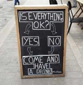 사진은 어느 카페 앞에 놓인 입간판을 촬영한 것. 주인은 입간판을 통해 “모든 게 잘 돼가고 있나요?”라는 물음 아래 긍정과 부정의 답변을 요구했다.