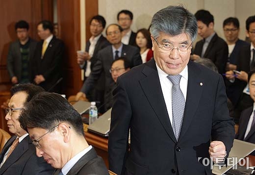 김중수 한국은행 총재가 9일 오전 서울 중구 남대문로 한국은행 본관에서 열린 ‘금융통화위원회 본회의’에 참석하고 있다. 방인권 기자 bink7119@