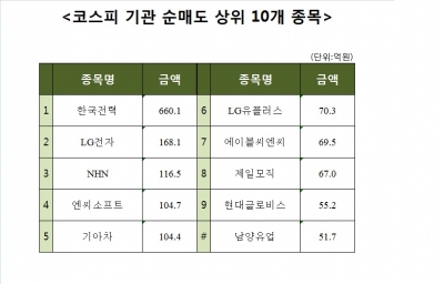 [코스피 기관 순매도 상위 10개 종목]