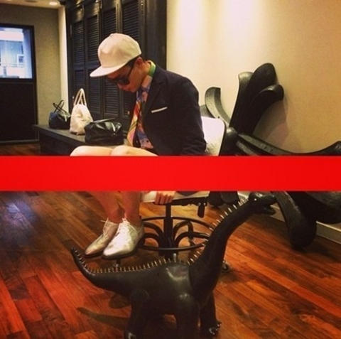 사진 속 지드래곤은 짧은 바지를 입고 의자에 앉아 있다. 특히 지드래곤은 사진 가운데를 빨간선으로 가렸다. 이를 본 네티즌들은 마치 아무것도 입지 않은 듯한 착시효과를 일으킨다며 폭소하고 있다.