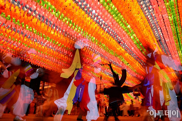 불기 2557년 부처님 오신 날을 닷새 앞두고 있는 12일 오후 서울 종로구 조계사에서 시민들과 사물놀이패가 흥겨운 강강술래를 하고 있다. 노진환 기자 myfixer@