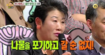 이날 소개된 사연은 나물 캐러다니는 엄마는 겨울만 빼고 매일같이 산으로 간다. 박 씨는 "냉이, 쑥 두릅 할 것 없이 씨가 마르게 캐는데 그 양이 쌀 한 포대다"고 전했다.