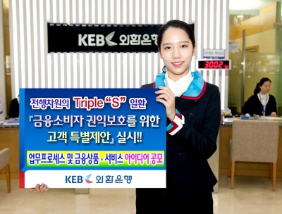 외환은행은 지난 6일부터 시행중인 영업효율성 향상을 위한‘워크 스마트 2013 트리플S’ 캠페인의 일환으로 금융소비자 관점에서 업무프로세스 개선 및 금융 소외계층을 위한 금융상품·서비스 개발을 위한 고객 특별제안 공모를 오는 7월 7일까지 실시한다고 14일 밝혔다.