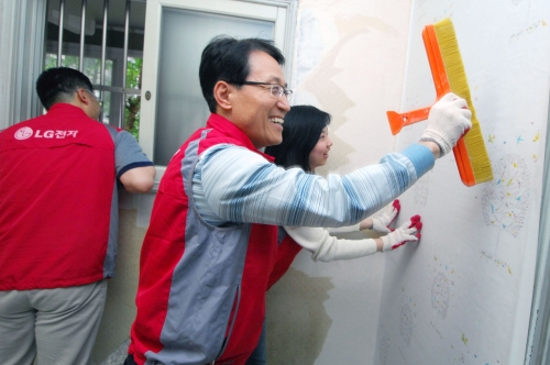 LG전자 임직원들은 약 4시간 동안 벽지 도배, 청소 등 주거 환경을 깨끗하게 개선하는 봉사 활동을 진행했다.