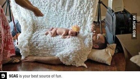 공개된 사진 속에는 바닥에 누운 아빠 위에 카페트가 덮여 있고 그 위에 아기가 잠들어 있는 모습이 담겨 있다.