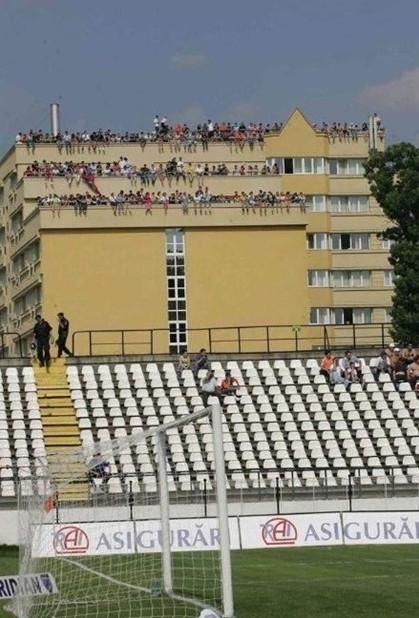 사진을 보면 축구장에 관중이 없는 이유는 명확했다. 사진속 축구장 관람석은 텅 비어있는 반면 관람석 뒤 건물 옥상에는 축구 경기를 보려는 사람들로 빼곡하다.