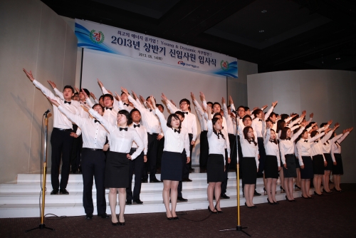 이날 신입사원들은 이미 배치를 받은 사업소별 입장 및 구호제창을 펼쳤다. 또 신입사원으로서 포부를 발표하고 동기간 일체감을 살린 치어 리딩, 난타 공연, 트론 댄스, 부모님을 위한 합창 등을 진행했다.