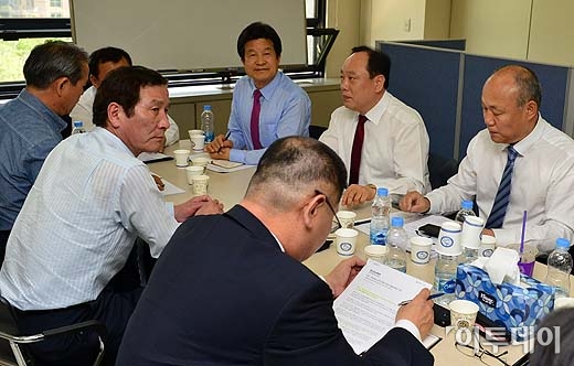 개성공단 정상화 촉구 비상대책위원회 관계자들이 14일 오후 서울 영등포구 여의도 중소기업중앙회에서 피해대책 방안 마련을 위한 긴급회의를 열고 있다. 방인권 기자 bink7119