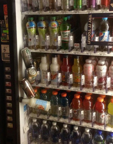 최근 한 온라인 커뮤니티에 ‘잭팟 자판기’라는 사진이 공개됐다. 자판기 안쪽에 한쪽으로 몰려있는 4개의 음료수가 언제 떨어질지 모르기 때문에 누군가는 한 번에 다 받을지도 모르는 상황이 연출됐다. 이에 네티즌들은 음료수를 한꺼번에 빼는 방법을 생각하는 등 재밌는 상상력을 불러일으켰다.