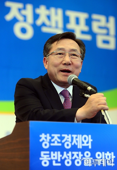 창조경제와 동반성장을 위한 정책포럼이 15일 오후 여의도 중소기업중앙회에서 열렸다. 김기문 중소기업중앙회 회장이 환영사를 하고 있다. 노진환 기자 myfixer@