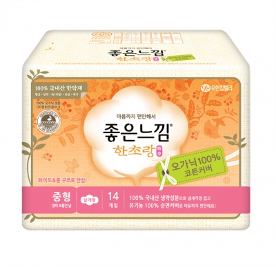 유한킴벌리는 유기농 순면에 천연 한약재를 적용한 '좋은 느낌 한초랑 오가닉코튼커버' 생리대를 출시했다고 16일 밝혔다.