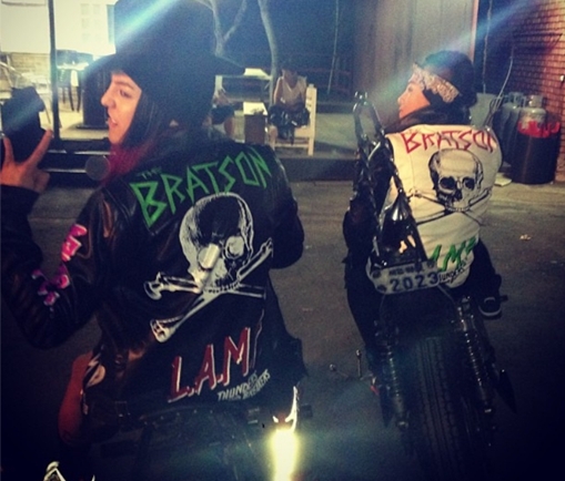 사진 속 태양과 지드래곤은 오토바이를 탄 채 같은 방향으로 고개를 돌려 장난 가득한 표정을 짓고있다. 특히 둘은 해골이 그려진 점퍼를 입고 두건을 쓰고 있어 마치 폭주족을 연상케 한다.