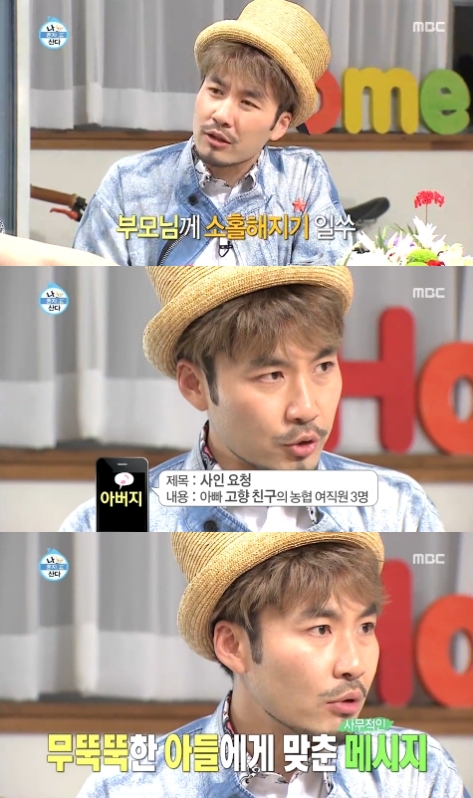 노홍철은 “얼마 전 아버지의 문자를 한 통 받았는데, 처음에는 스팸 문자인 줄 알았다”며 “사인 요청이라는 제목으로 ‘아빠 고향 친구의 농협 여직원 3명. 추신:전달은 아빠가 할 것임’이라는 내용으로 고 털어놨다.