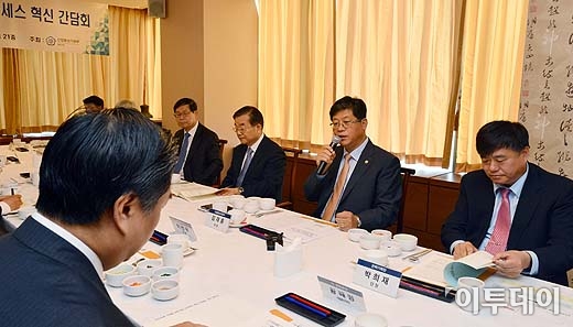 김재홍 산업통상자원부 차관이 21일 오전 서울 강남구 역삼동 한국기술센터에서 열린 ‘창조경제 구현을 위한 R&D 프로세스 혁신 간담회’에서 모두발언을 하고 있다. 방인권 기자 bink7119@