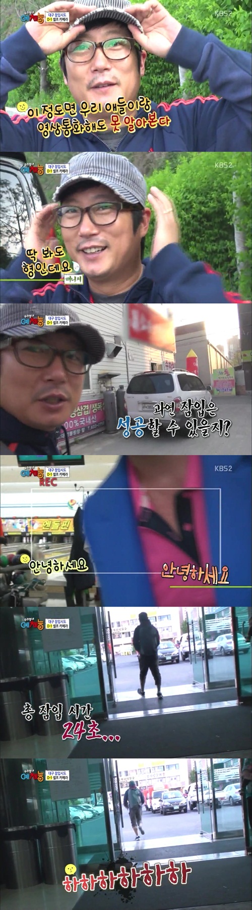 그러나 그대로 볼링장으로 잠입한 후 입구까지는 무사히 통과한 이수근은 “일단 저를 알아보지 못하고 있다”고 밝혔다.