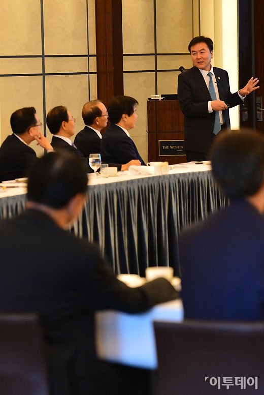 신제윤 금융위원장이 22일 서울 소공동 웨스틴 조선호텔에서 열린 서울IB포럼에 참석해 최근 금융 현안에 대해 강연하고 있다. 양지웅 기자 yangdoo@