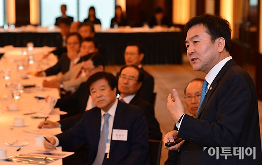 신제윤 금융위원장이 22일 서울 소공동 웨스틴 조선호텔에서 열린 서울IB포럼에 참석해 최근 금융 현안에 대해 강연하고 있다. 양지웅 기자 yangdoo@