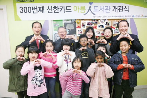 신한카드의 대표 사회공헌 프로그램인 ‘아름人 도서관’ 지원 사업은 2010년부터 사회복지법인 ‘아이들과 미래’(이사장 송자)와 함께 진행 중이다.