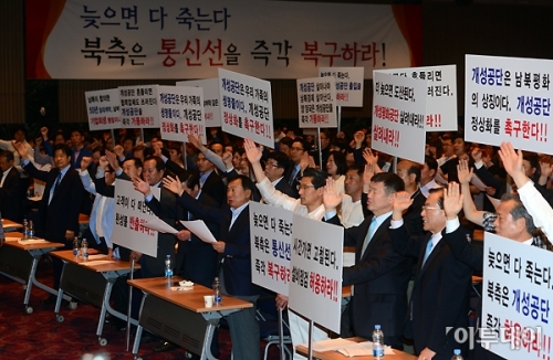 한편, 이날 촉구대회에는 개성공단 입주기업 대표, 임직원, 주재원 등 500여명이 모였다.