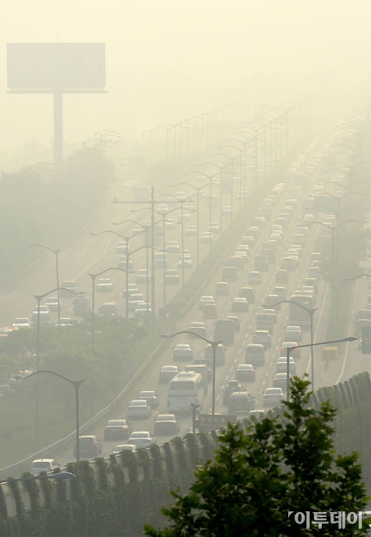 서해안과 내륙에 안개가 짙게 낀 24일 서울 대방역 인근에서 바라본 올림픽대로에 안개가 뿌옇게 덮여 있다. 기상청은 낮에는 안개가 걷히겠지만 따가운 햇살이 내리쬐는 가운데 기온은 어제같은 무더위를 보일 것으로 전망했다. yangdoo@