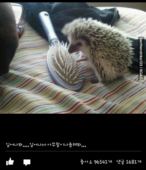 온라인 커뮤니티에는 브러시 빗을 깨우기 위해 흔들고 있는 고슴도치 사진이 올라왔다.