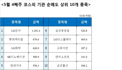 5월 4째주 기관 순매도 상위 10개 종목