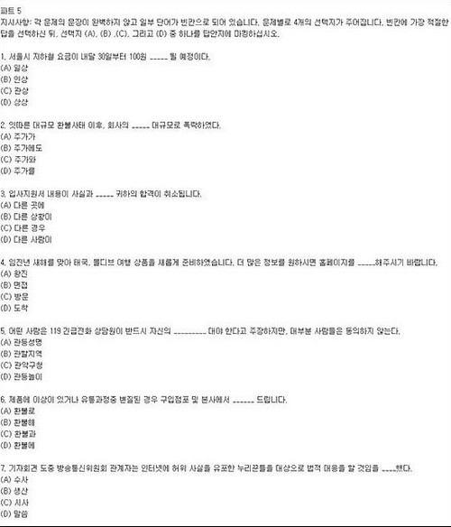 이 사진에는 영어가 하나도 없다. 문제와 정답 모두 한글로만 작성돼 있다.