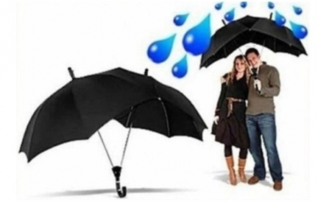 이 사진에는 한 커플이 우산을 쓰고 있는 모습이 담겨 있다. 우산 두 개를 쓰고 있는 것처럼 보이지만 하나의 우산을 쓰고 있어 보는 이들로 하여금 궁금증을 유발했다. 자세히 보면 이 우산은 하나의 손잡이에 두 개의 우산이 붙어 있는 형태로 돼있다.