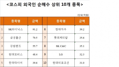 [코스피 외국인 순매수 상위 10개 종목]