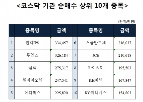 [코스닥 기관 순매수 상위 10개 종목]