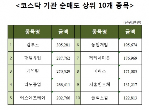 [코스닥 기관 순매도 상위 10개 종목]