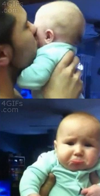이 영상에는 면도를 안 한 아빠가 아기에게 뽀뽀하는 장면이 담겨 있다. 아기는 아빠의 뽀뽀를 받고선 따가운 수염 때문인지 울상을 지어 보는 이들로 하여금 웃음을 자아냈다.