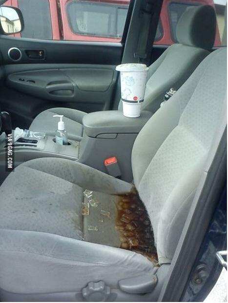 자동차의 시트가 가죽이 아니고 직물로 돼 있어 콜라를 흠뻑 흡수에 보는 이들로 하여금 안타까움을 자아냈다.