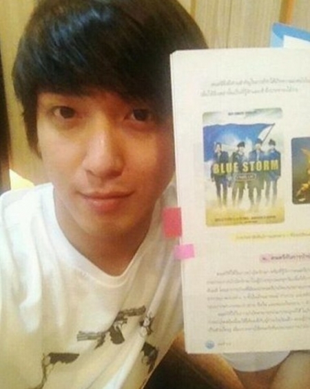 이 사진에는 정용화가 씨엔블루에 대한 설명이 나와 있는 태국 교과서를 들고 카메라를 향해 웃고 있는 모습이 담겨 있다.