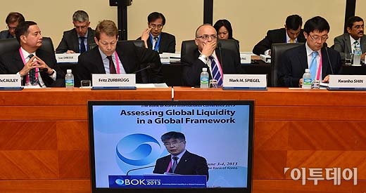 김중수 한국은행 총재가 3일 오전 서울 중구 남대문로 한국은행 본관에서 열린 ‘2013년 한국은행 국제컨퍼런스’에서 개회사를 하고 있다. 방인권 기자 bink7119@