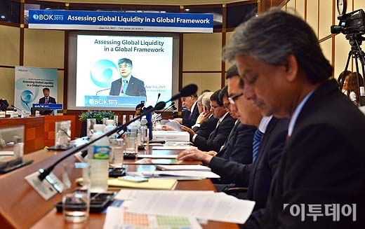 김중수 한국은행 총재가 3일 오전 서울 중구 남대문로 한국은행 본관에서 열린 ‘2013년 한국은행 국제컨퍼런스’에서 개회사를 하고 있다. 방인권 기자 bink7119@
