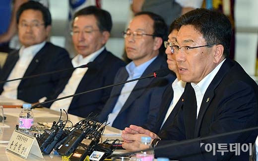 윤상직 산업통상자원부 장관이 3일 오후 서울 중구 대한상공회의소에서 열린 ‘2013년 여름철 전력수급대책 산업계 CEO 간담회’에서 모두발언을 하고 있다. 방인권 기자 bink7119@