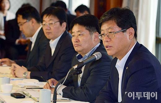 김재홍 산업통상자원부 제 1차관이 4일 오전 서울 중구 밀레니엄힐튼 호텔에서 열린 유통산업연합회 조찬 간담회‘에서 모두발언을 하고 있다. 방인권 기자 bink7119@