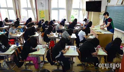 2014학년도 대학수학능력시험에 대비한 첫 모의고사가 실시된 5일 오전 서울 종로구 풍문여자고등학교에서 3학년 학생들이 문제를 풀고 있다. 6월 모의고사에 지원한 수험생은 재학생 57만2577명, 졸업생 7만3383명 등 모두 64만5960명이다.