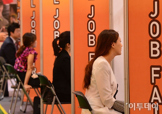 세계 22개국, 73개 기업이 참가하는 '2013 해외취업 박람회'가 5일 서울 양재동 aT센터에서 열렸다. 이날 박람회장을 찾은 구직자들이 면접을 보고 있다. 양지웅 기자 yangdoo@