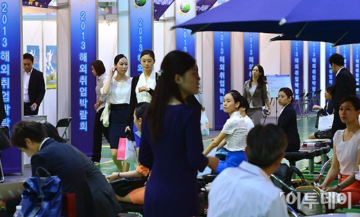 세계 22개국, 73개 기업이 참가하는 '2013 해외취업 박람회'가 5일 서울 양재동 aT센터에서 열렸다. 이날 박람회장이 구직자들로 붐비고 있다. 양지웅 기자 yangdoo@