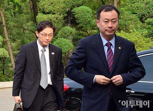 김남식 통일부 차관(오른쪽)과 천해성 통일부 통일정책실장이 9일 오전 서울 종로구 삼청동 남북회담본부에서 판문점에서 열리는 남북 장관급 회담을 위한 국장급 실무접촉 사전 논의를 위해 남북회담본부로 들어서고 있다. 방인권 기자 bink7119@