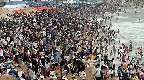 ▲9일 부산 해수욕장을 찾은 인파(사진=연합뉴스)