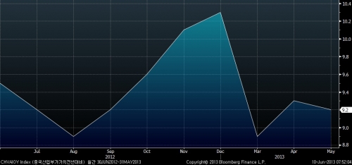 중국 경제지표는 일제히 부진을 면치 못하고 있다. 중국 국가통계국은 9일(현지시간) 지난 5월 산업생산이 전년 동월 대비 9.2% 성장했다고 발표했다. 이는 전문가 예상치인 9.4%와 전월의 9.3%를 모두 밑돈 것이다.