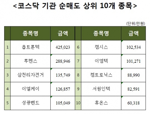 [코스닥 기관 순매도 상위 10개 종목]