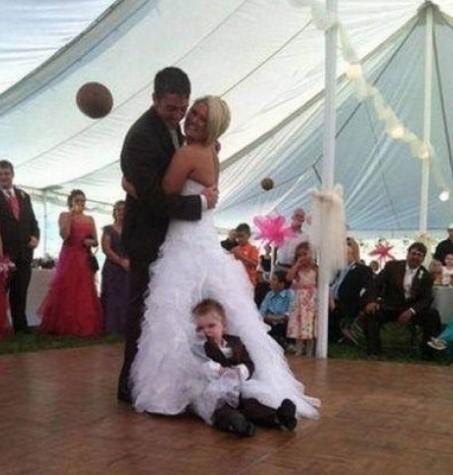공개된 사진 속에는 결혼식을 올리는 한 쌍의 커플 사이로 한 꼬마 아이가 포착됐다. 사진 속 꼬마는 치마폭을 끌어안고 바닥에 앉아 뾰로퉁한 표정을 짓고 있다.