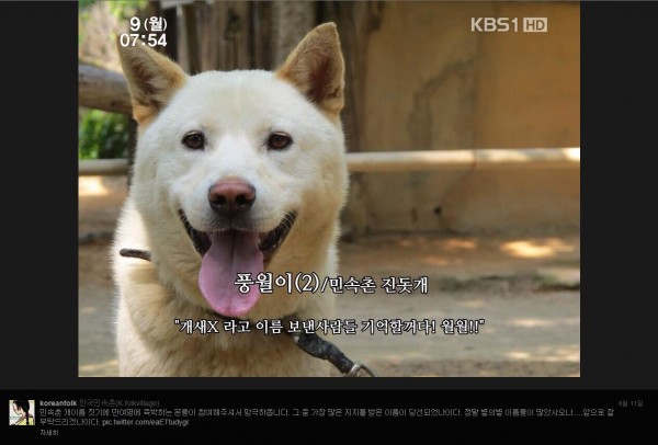 앞서 민속촌은 지난 11일 공식 트위터(@koreanfolk)를 통해 “민속촌 개이름 짓기에 만여명에 육박하는 분들이 참여해주셔서 망극하옵니다. 그 중 가장 많은 지지를 받은 이름이 당선되었나이다. 정말 별의별 이름들이 많았사오나… 앞으로 잘 부탁드리겠나이다”라며 ‘풍월이’를 발표했었다.