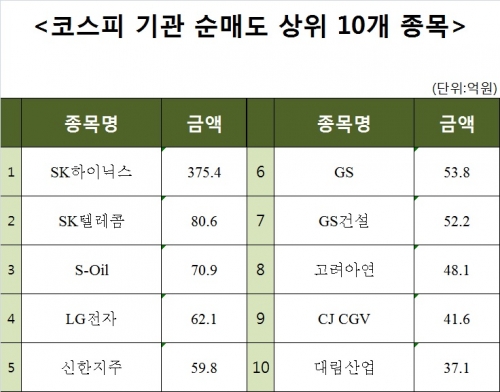 [코스피 기관 순매도 상위 10개 종목]